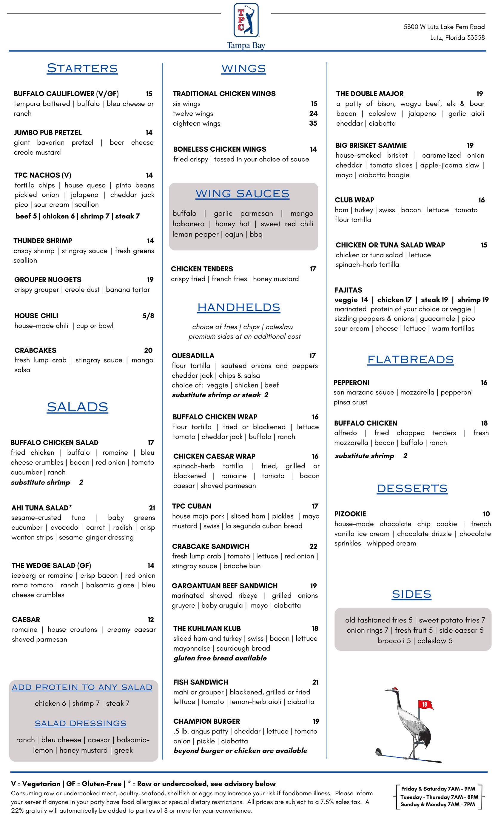 A modern restaurant, friendly neighborhood hub, and golfer’s retreat – The Grill @ TPC Tampa Bay is a place designed to bring people together. The Grill and Outdoor Patio, called the Winner’s Circle overlooks the world-famous 18th hole called “Glory.” It is one of the most challenging, yet inspiring and beautiful holes on the Champions Tour. This is one of the most beautiful back drops in all of Tampa.
